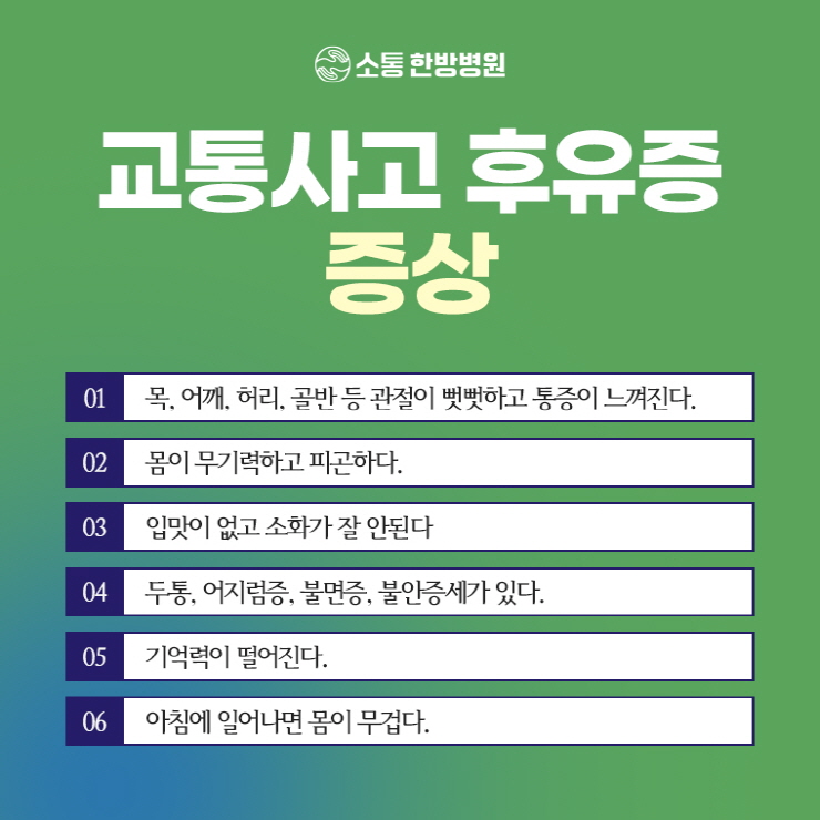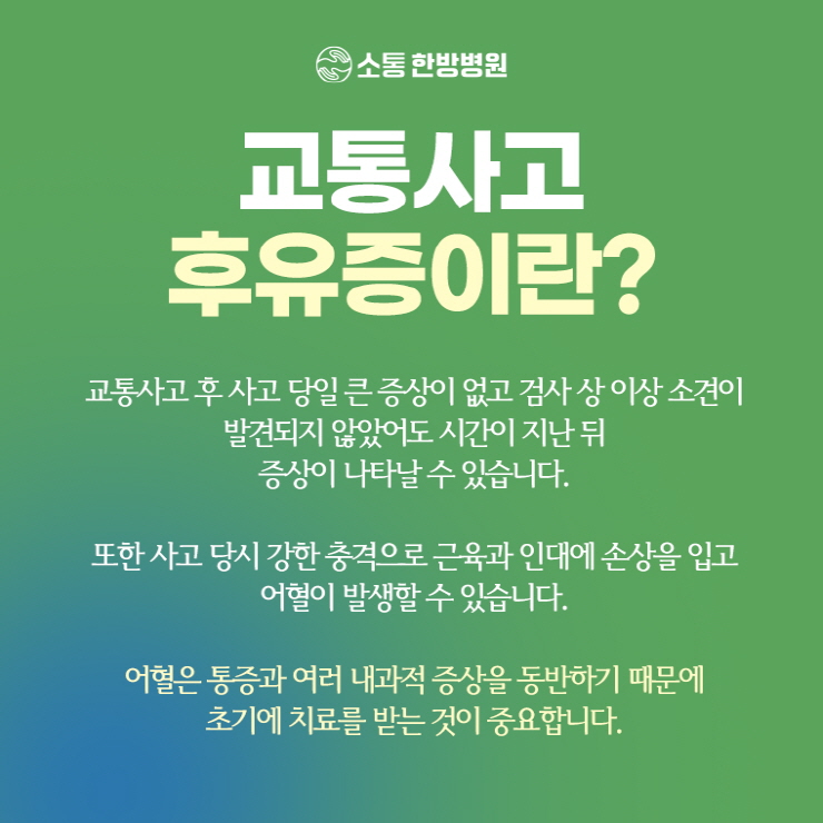 교통사고 이후 시간이 지나면서 통증 및 불편함이 점차 드러나기도 했었는데요.