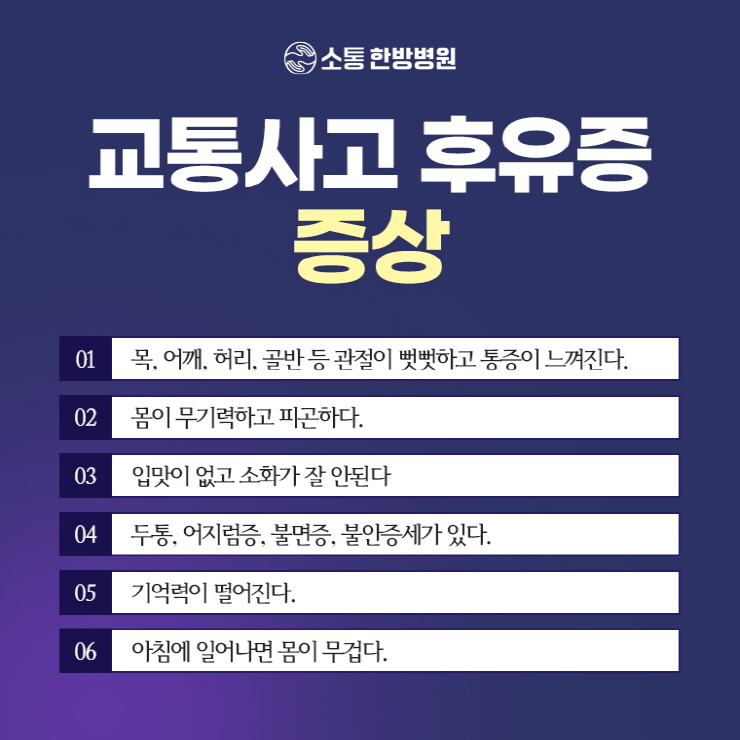 교통사고 후유증은 눈에 보이지 않는 경우가 많아 간과하기 쉬웠습니다.