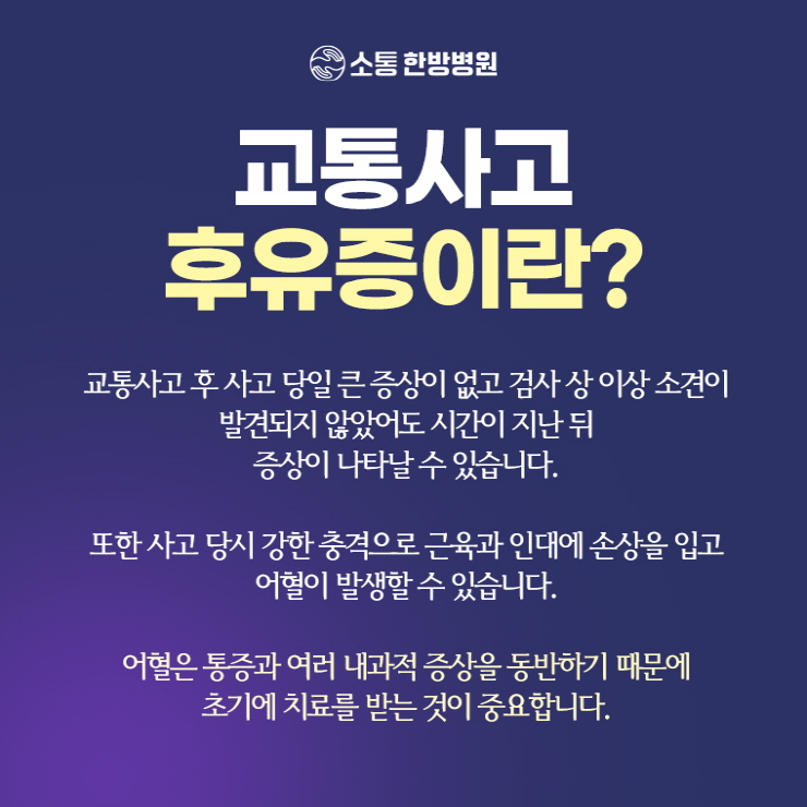 교통사고 후유증은 눈에 보이지 않는 경우가 많아 간과하기 쉽습니다.