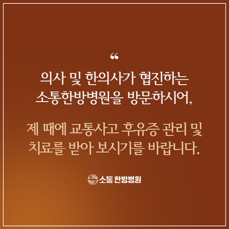 교통사고 후에는 겉으로 드러나는 외상이 없다 해도 우리 몸 내부 조직에 미세한 손상이 발생할 수가 있었답니다.