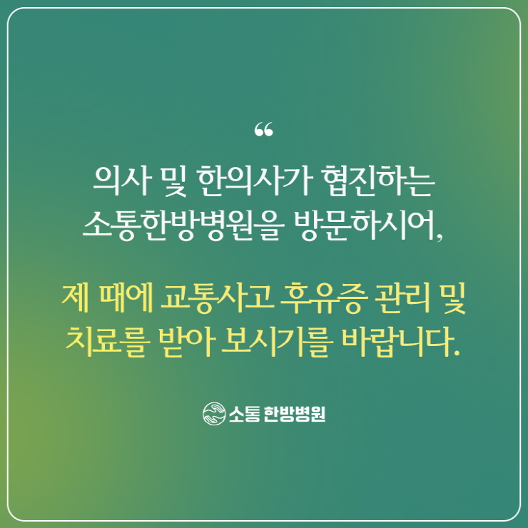 교통사고 후의 후유증은 눈에 보이지 않는 경우가 많았으므로 자칫 간과되기 쉬웠어요.