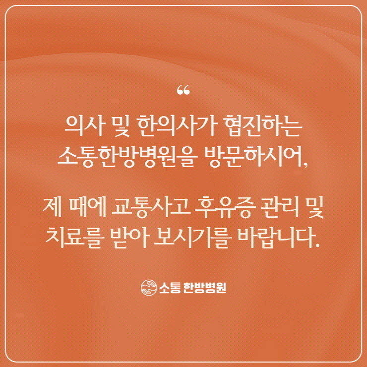 따라서 사고 직후 증상이 경미해 보여도 방치하지 않으면서 조속히 체계적인 진단을 받아야 했어요.