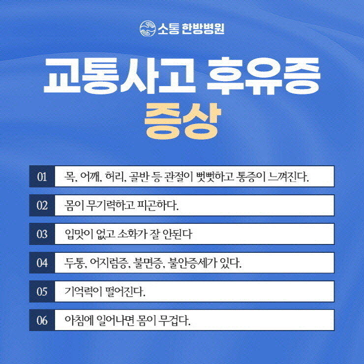 교통사고 후유증은 시간이 지남에 따라 서서히 나타나므로 사고 직후의 빠른 대응이 매우 중요했답니다.