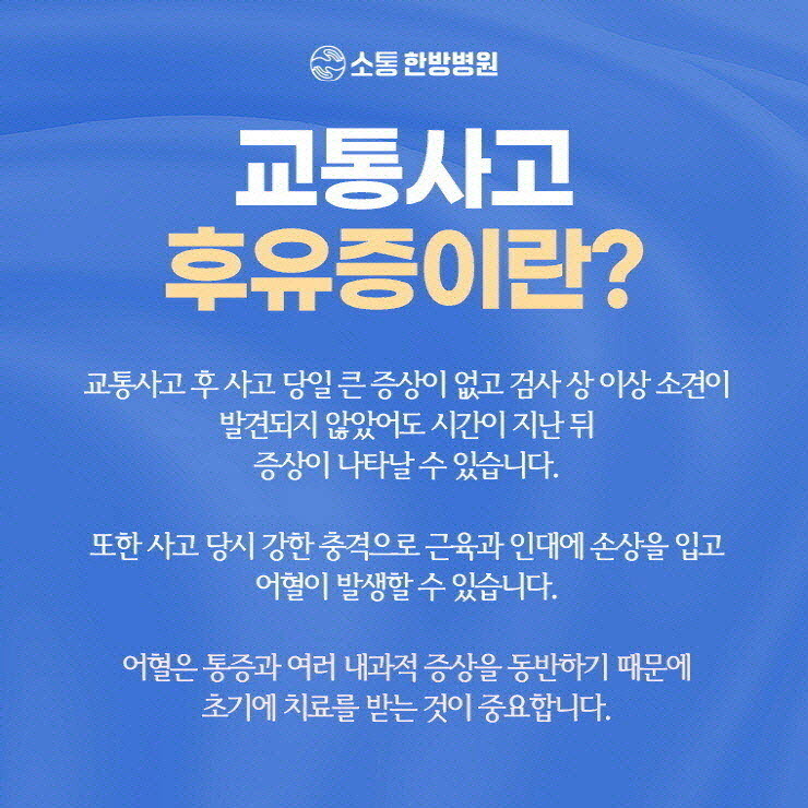 교통사고 후유증은 사고 직후에는 느껴지지 않을 수 있답니다.