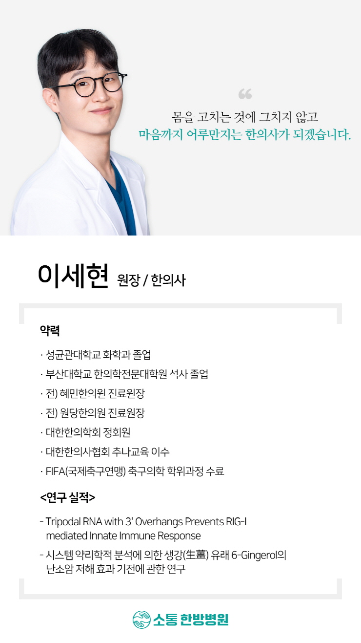 한방에서는 사고 후 체내 어혈을 제거하고 기혈 순환을 돕는 한약을 처방하고 뜸 치료로 전신의 균형을 맞추고 회복력을 높였습니다.