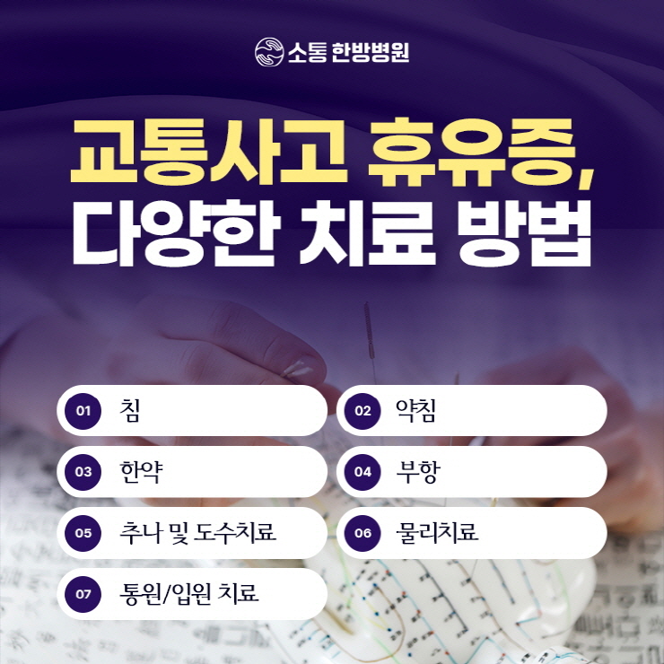 침술은 교통사고 후 근육의 경직을 풀어주면서, 약침은 염증을 감소시키면서 회복을 도와줍니다.