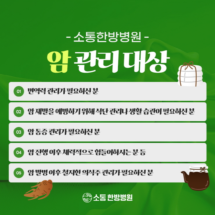 치료 이후 급격하게 떨어진 체력 및 면역 상태를 관리하고 환자분들이 다시 일상으로 돌아갈 수 있게 지원하는 역할을 담당했습니다.