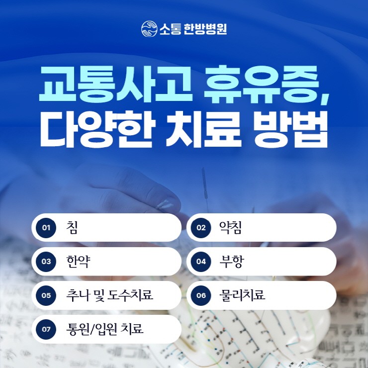 은평구한방병원 침 치료는 사고로 인해 긴장된 근육을 이완시키면서 통증을 완화하는 데 활용되었어요.