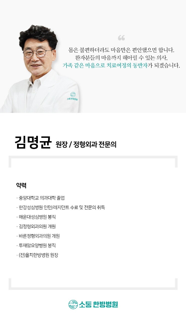 한방에서는 사고 후의 체내 어혈을 제거하고 기혈 순환을 돕는 한약을 처방했고, 뜸 치료를 통해 전신의 균형을 맞추고 회복력을 높였습니다.